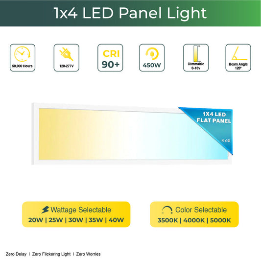1x4 LED Panel 5200 Lumens, Adjustable Wattage 20W-40W, Selectable CCT 3500K-5000K