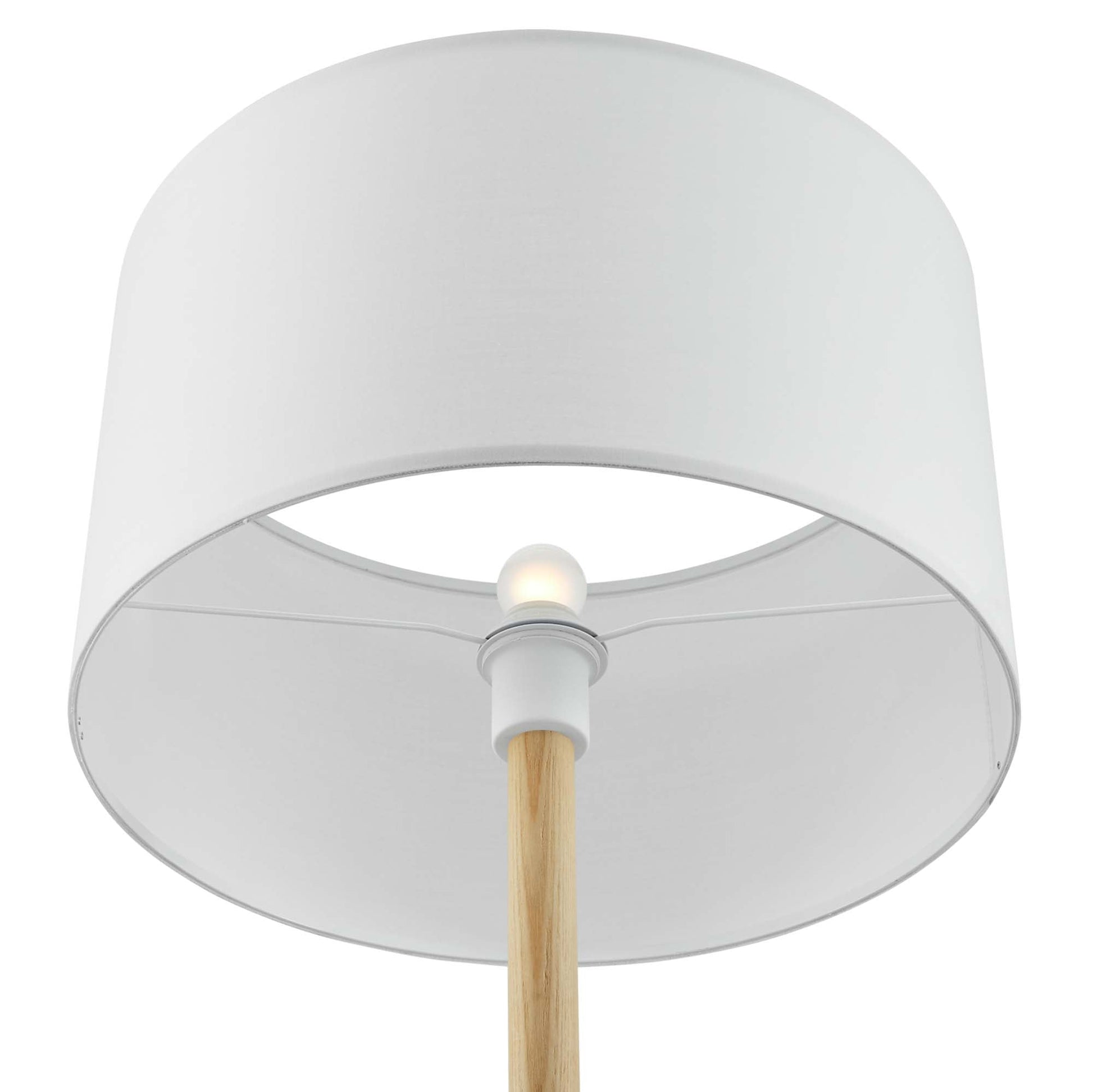 The Natalie Tripod Floor Lamp enchants with sophistication in your living room, bedroom, dining room, or lounge. This tripod lamp harmonizes in contemporary or eclectic settings, featuring a distinctive mid-century modern design. The wood and metal rod integrates subtle detail and complements the oversized drum shade elegantly adorning this standing lamp. Natalie is equipped with a power cord and On/Off foot switch and requires 1 E26 bulb, 40W max, or LED equivalent (not included).